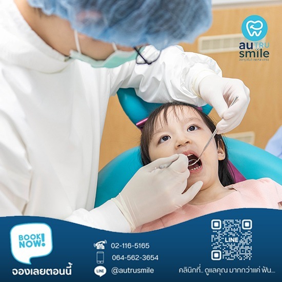 คลินิกเฉพาะทางด้านทันตกรรมเด็ก กรุงเทพ คลินิกเฉพาะทางด้านทันตกรรมเด็ก กรุงเทพ  ดูแลด้วยใจ ใส่ใจทุกรอยยิ้มเล็กๆ ที่ คลินิกทันตกรรม ออทรู สไมล์ เราเข้าใจว่าการดูแลฟันของเด็กต้องอาศัยความอ่อนโยนและการใส่ใจเป็นพิเศษ ทีมทันตแพทย์เฉพาะทางด้านทันตกรรมเด็กของเรามีความเชี่ยวชาญในการทำให้เด็กๆ รู้สึกผ่อนคลายและปลอดภัยทุกครั้งที่มาใช้บริการคลินิกของเรา เราอ่อนโยน และเข้าใจเด็กทุกคน พร้อมบริการอย่างเอาใจใส่ สิ่งแวดล้อมที่เป็นมิตรและปลอดภัย เราใส่ใจในการสร้างบรรยากาศที่อบอุ่นและสนุกสนานสำหรับเด็กๆ ด้วยการทำให้คลินิกมีความรู้สึกสดใส บริการด้วยรอยยิ้มและความอ่อนโยน เพื่อให้ลูกน้อยรู้สึกเหมือนมาเล่น ไม่ใช่มารักษาฟัน ทีมงานมืออาชีพที่รักเด็ก ทีมทันตแพทย์และพนักงานทุกคนของเราได้รับการฝึกฝนและมีประสบการณ์ในการดูแลเด็กเป็นพิเศษ เราให้บริการด้วยความรักและความอ่อนโยน เพื่อให้เด็กๆ รู้สึกสบายใจและไม่กลัวการมาหาหมอฟัน บริการงานคลินิกทันตกรรม ที่อบอุ่นและอ่อนโยนสำหรับคุณหนูๆทุกคน บริการตรวจสุขภาพฟันเด็ก ตรวจฟันและช่องปากอย่างละเอียด พร้อมให้คำแนะนำในการดูแลฟันอย่างถูกวิธี ขูดหินปูนและทำความสะอาดฟันเด็ก ขจัดคราบหินปูนและสิ่งสกปรกต่างๆ เพื่อสุขภาพฟันที่ดีของลูกน้อย การเคลือบฟลูออไรด์เพื่อสุขภาพฟันที่ดีสำหรับเด็ก ป้องกันฟันผุด้วยการเคลือบฟลูออไรด์ที่ปลอดภัยและมีประสิทธิภาพ การอุดฟันน้ำนมและฟันแท้ รักษาฟันผุและป้องกันการลุกลามของปัญหาฟัน การใส่ฟันปลอมสำหรับเด็กอย่างเชี่ยวชาญตามหลักทันตกรรม ดูแลให้ลูกน้อยมีฟันที่สมบูรณ์และมั่นใจในการยิ้ม
